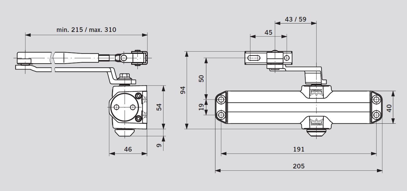 Дверной доводчик dormakaba TS Profil EN2/3/4 (+Size5) предназначен для установки на входные двери шириной до 1100мм. При использовании специального шаблона (Size 5) масса дверей может достигать 150 кг.